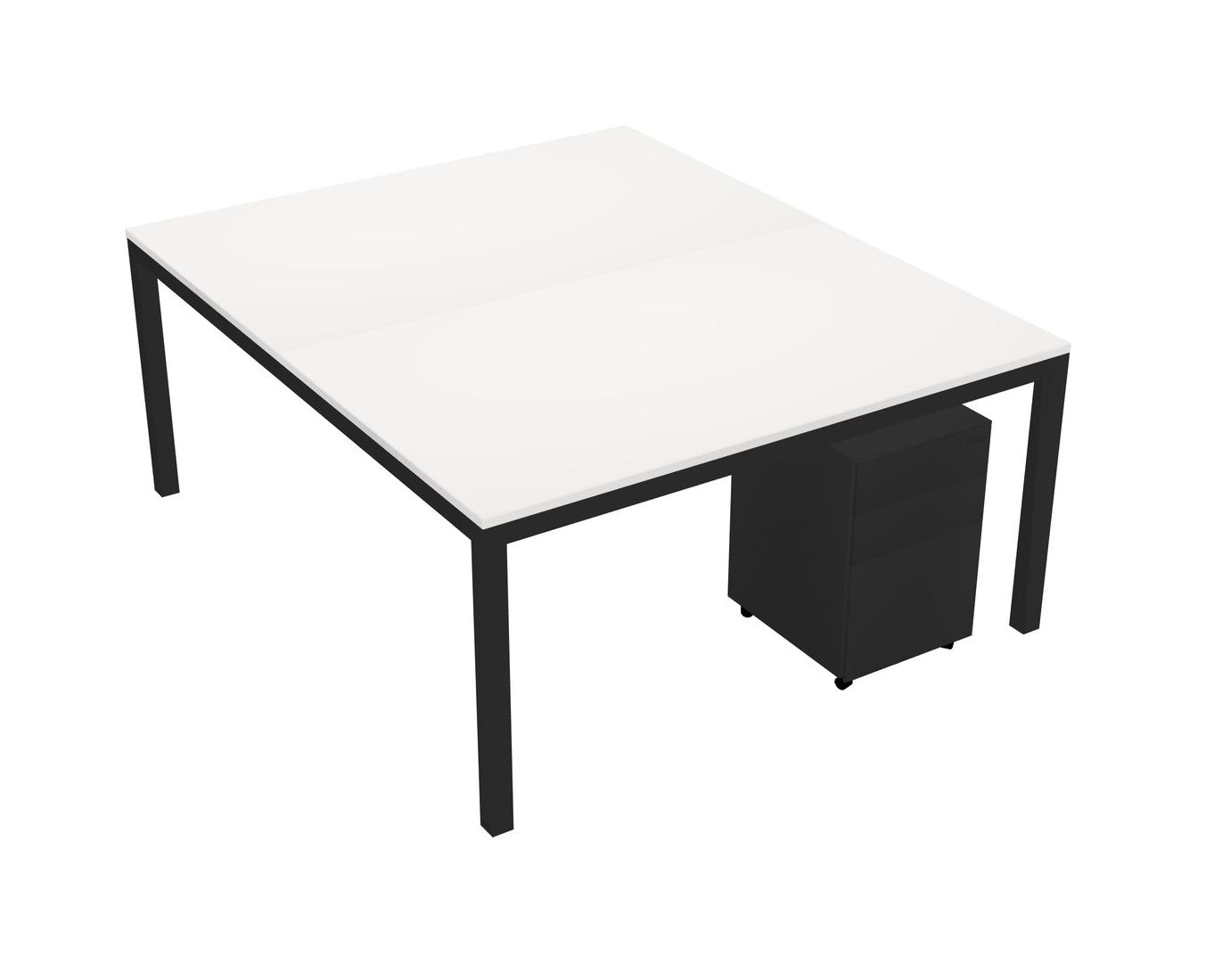 White Shared Rectangular Office Desk With Metal Mobile Drawers For 2 Persons