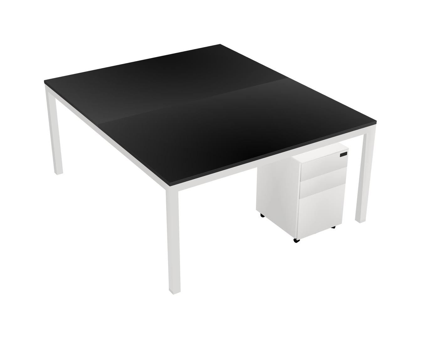 Black Shared Rectangular Office Desk With Metal Mobile Drawers For 2 Persons