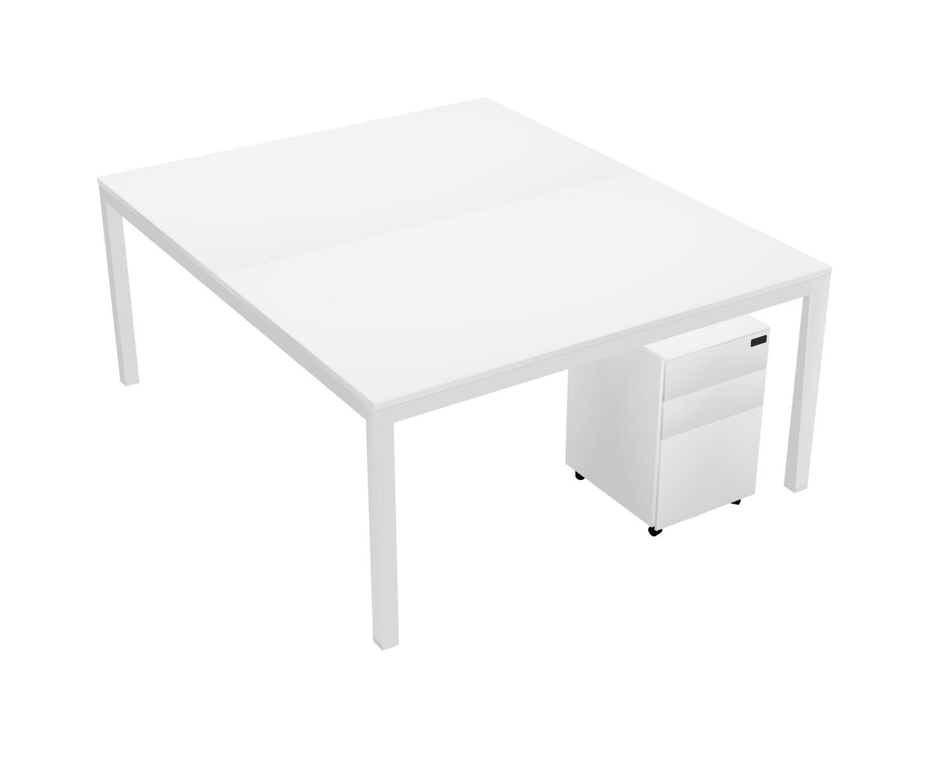 White Shared Rectangular Office Desk With Metal Mobile Drawers For 2 Persons