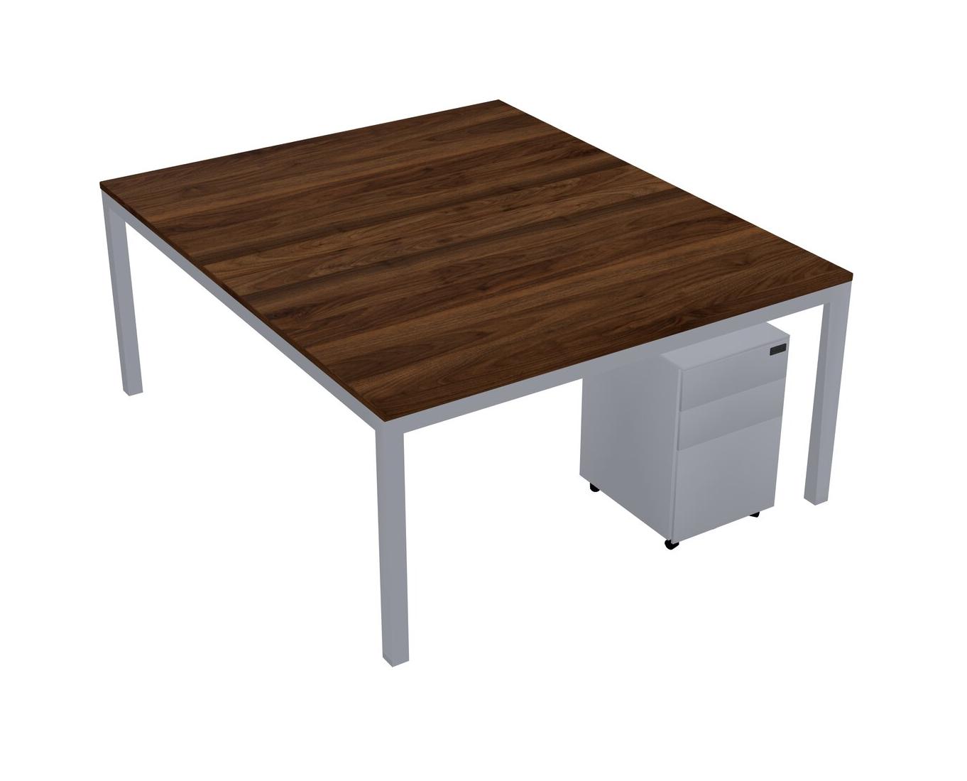 Columbia Walnut Shared Rectangular Office Desk With Metal Mobile Drawers For 2 Persons