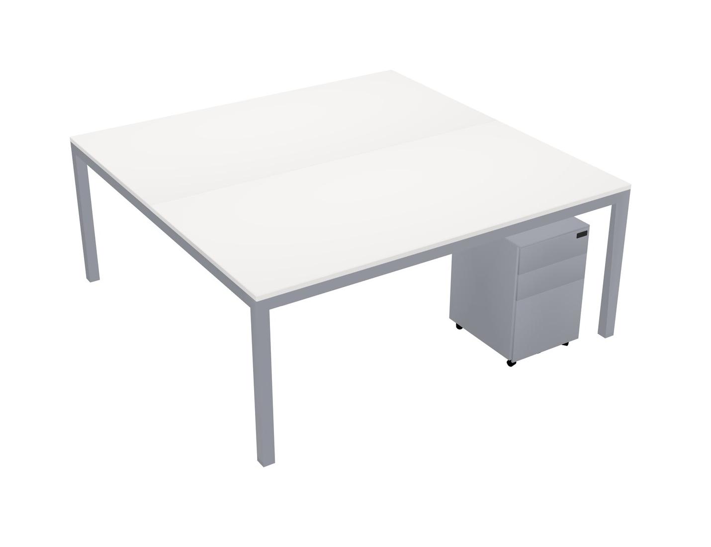 White Shared Rectangular Office Desk With Metal Mobile Drawers For 2 Persons