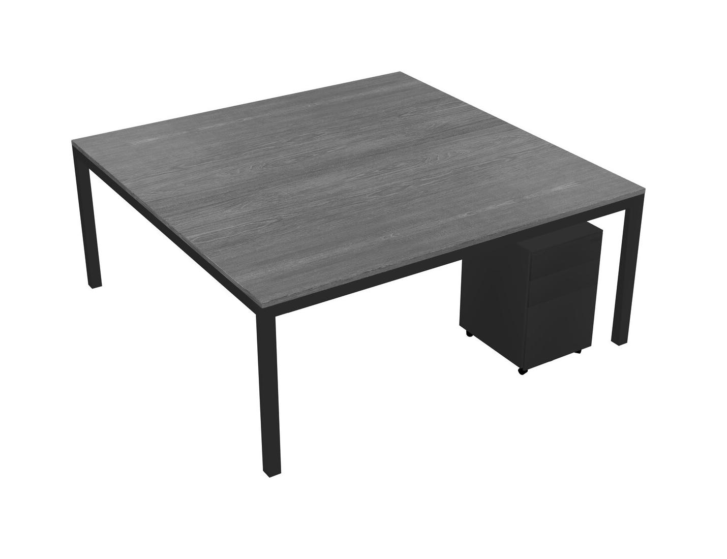 Grey Shared Rectangular Office Desk With Metal Mobile Drawers For 2 Persons