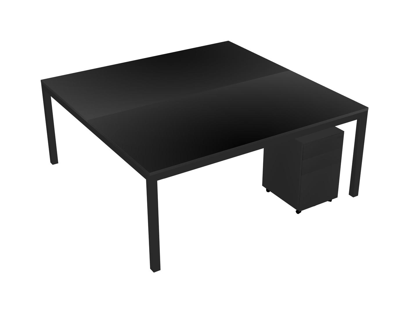 Black Shared Rectangular Office Desk With Metal Mobile Drawers For 2 Persons