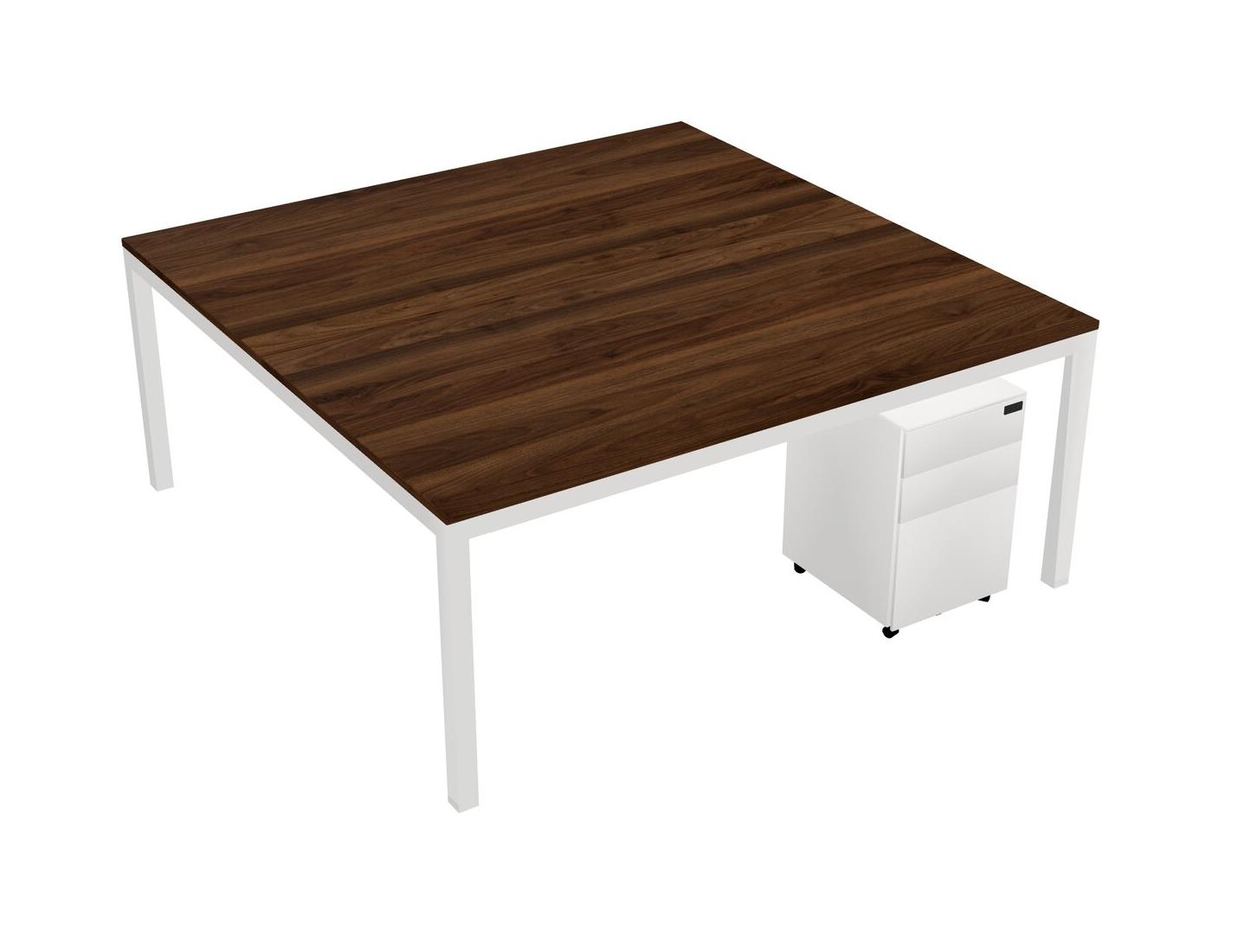 Columbia Walnut Shared Rectangular Office Desk With Metal Mobile Drawers For 2 Persons
