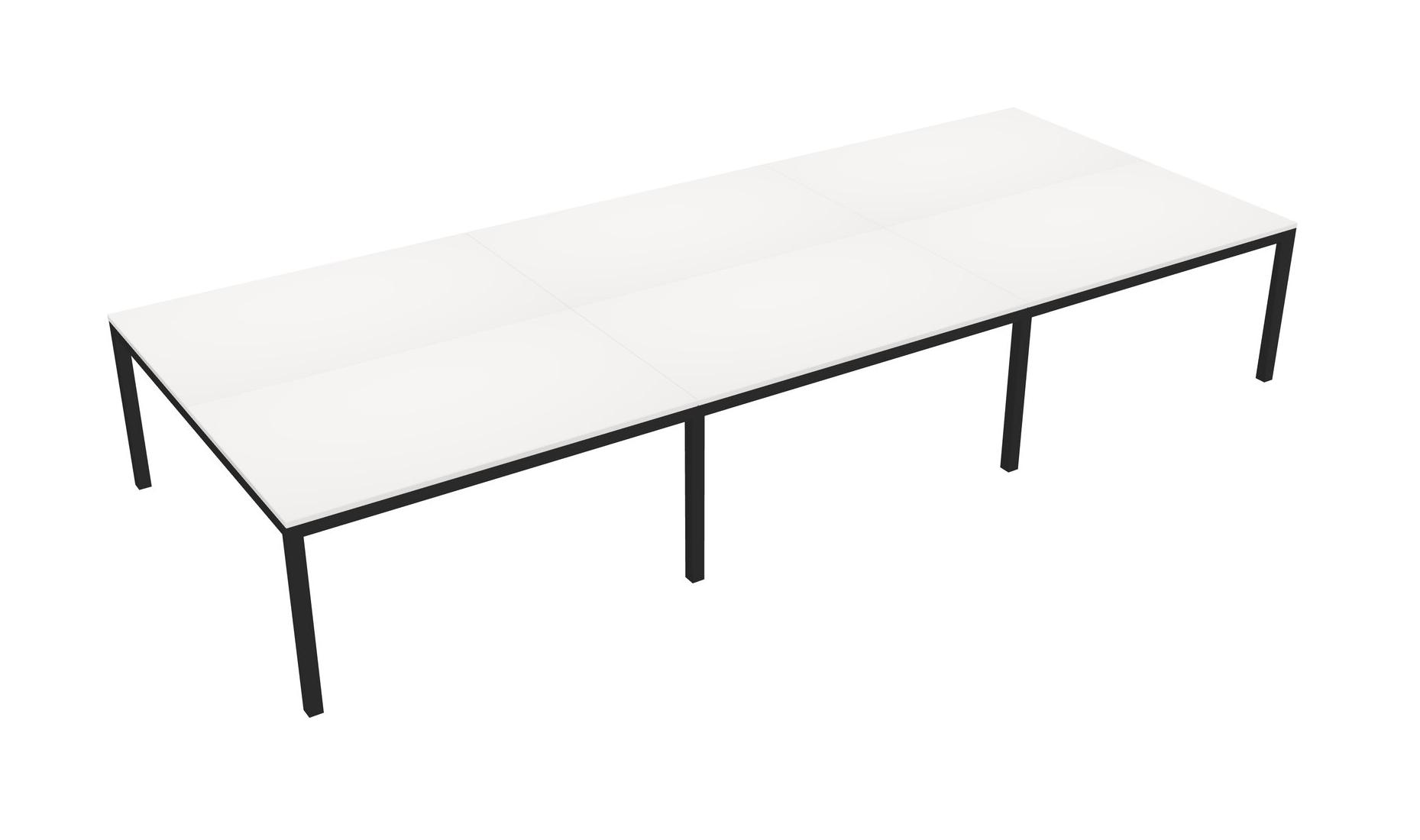 White Shared Rectangular Office Desk For 6 Persons