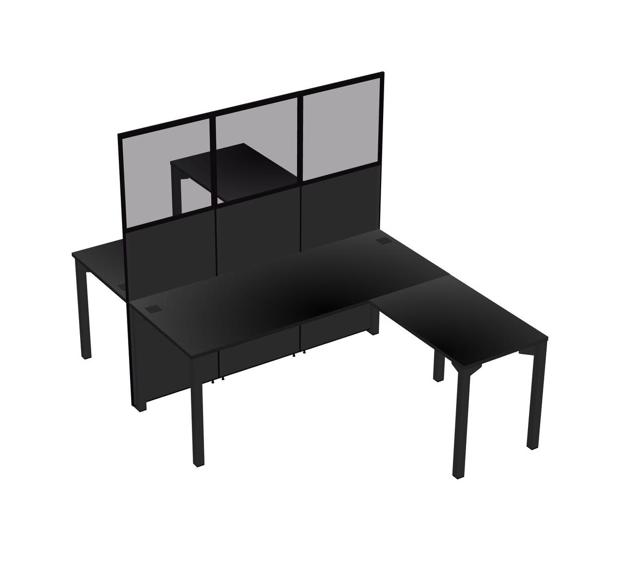 Black Shared L-shape Office Cubicle Panel System For 2 Persons