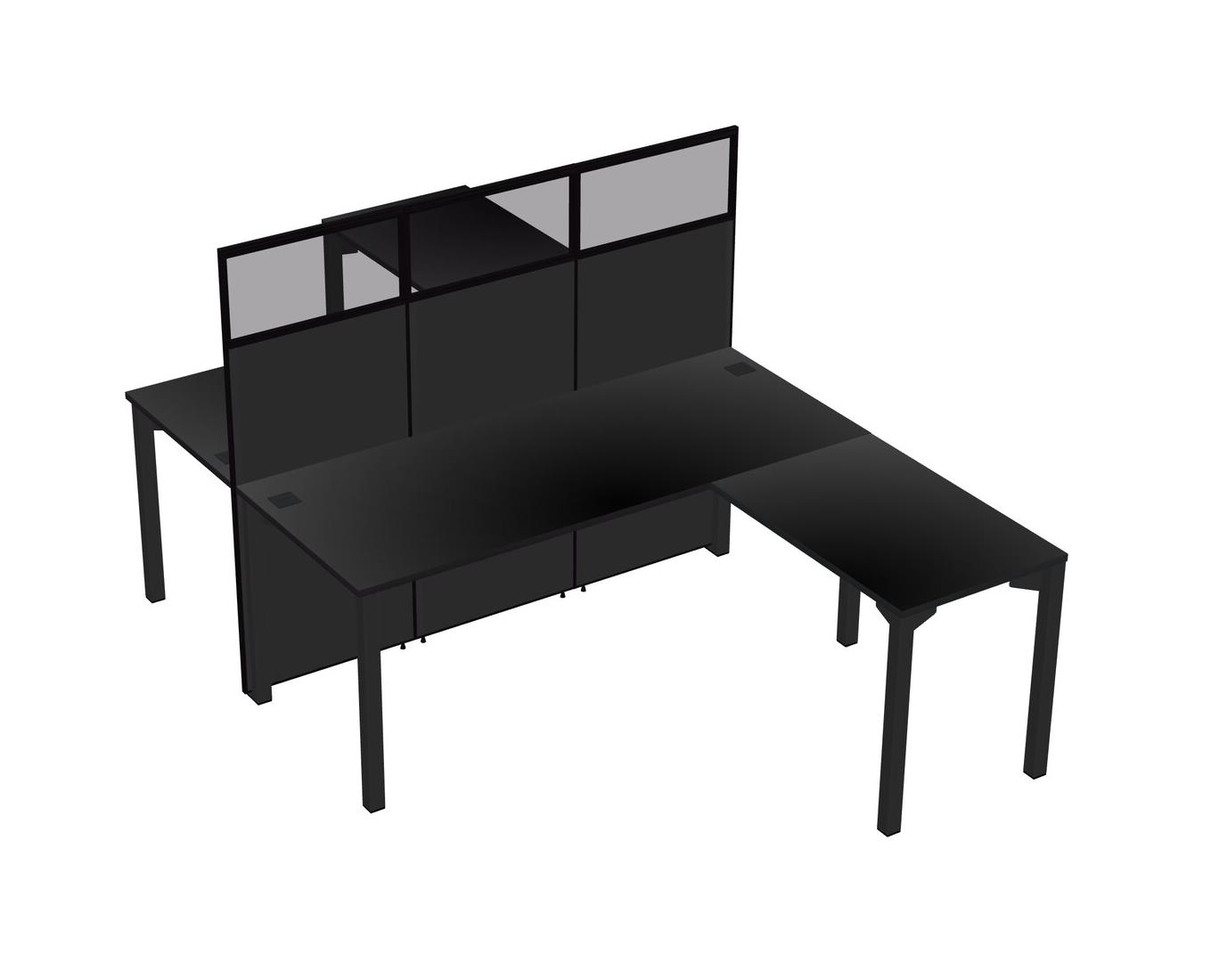 Black Shared L-shape Office Cubicle Panel System For 2 Persons