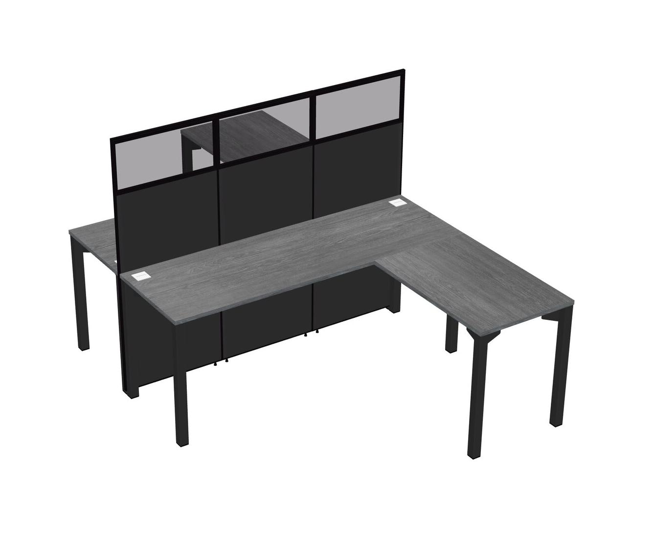 Grey Shared L-shape Office Cubicle Panel System For 2 Persons