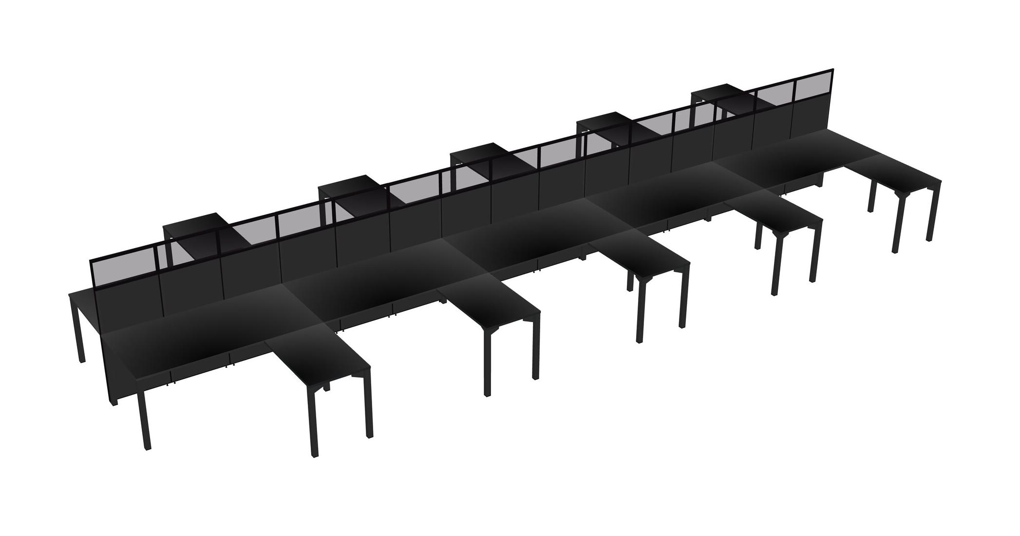 Black Shared L-shape Office Cubicle Panel System For 10 Persons