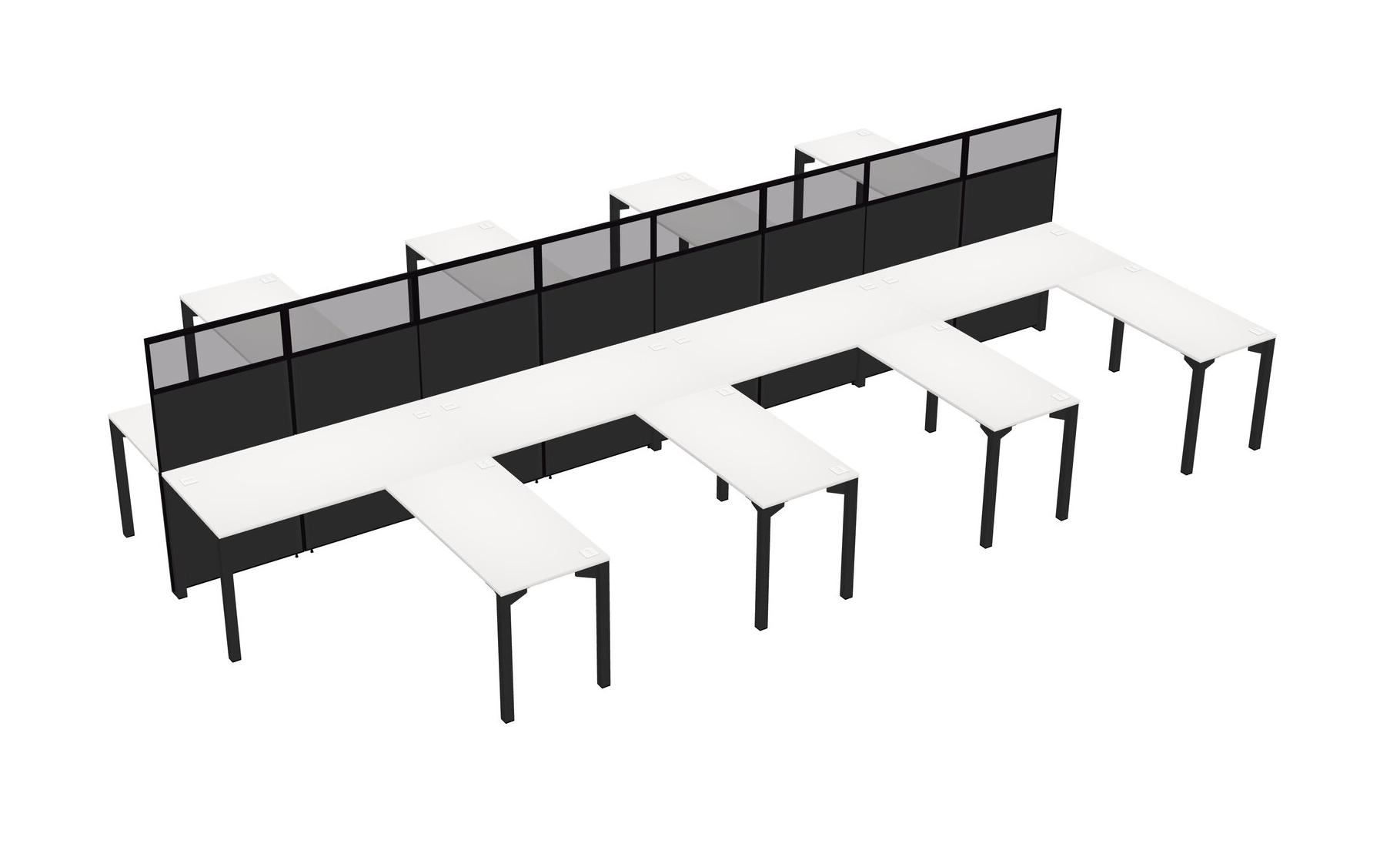 White Shared L-shape Office Cubicle Panel System For 8 Persons