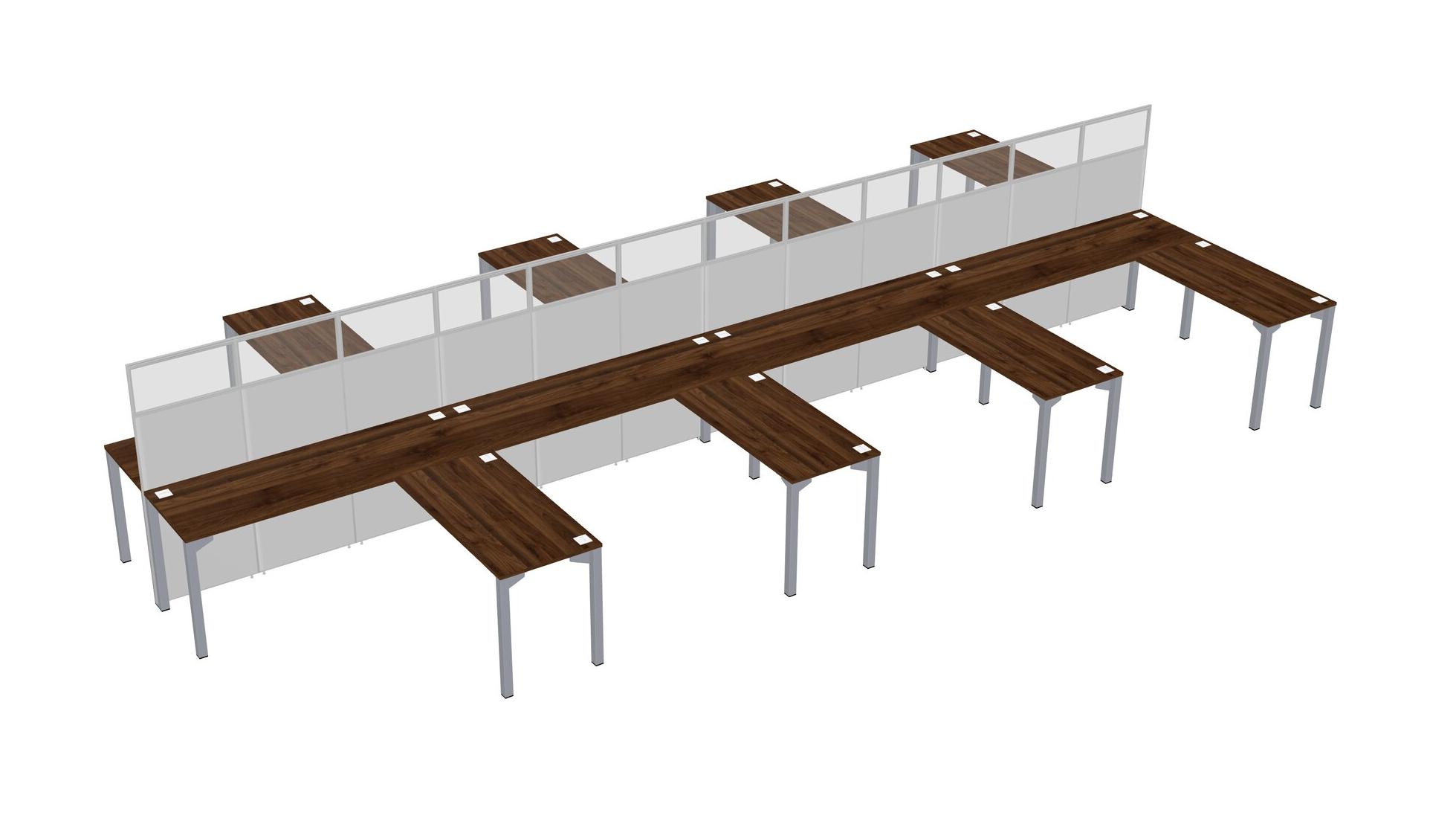 Columbia Walnut Shared L-shape Office Cubicle Panel System For 8 Persons