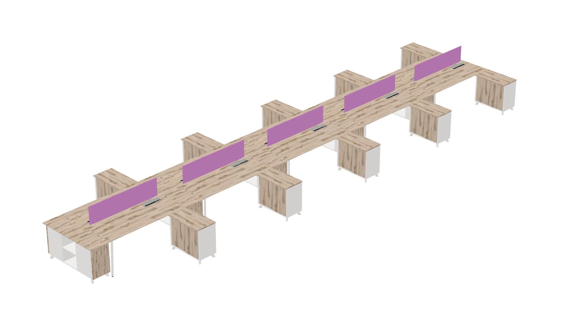Slick Heinne Holz Shared L-shaped Office Desk + Storage Cabinet + Desk Return + Plum Desk Divider For 10 Persons