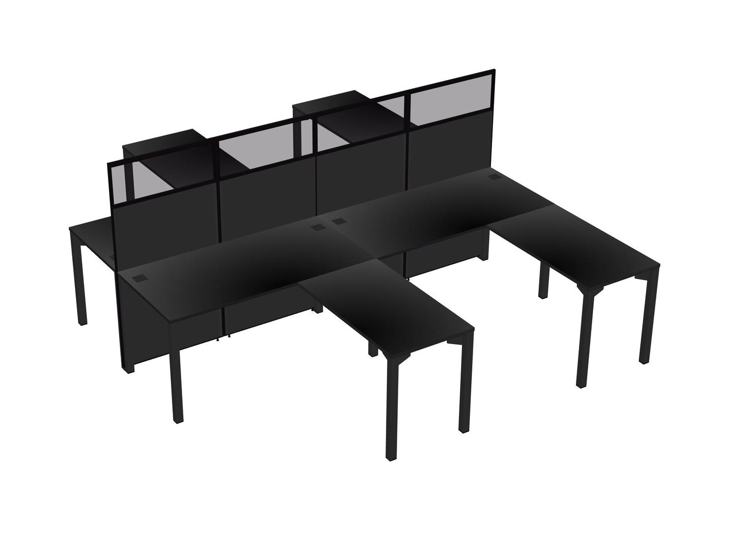 Black Shared L-shape Office Cubicle Panel System For 4 Persons