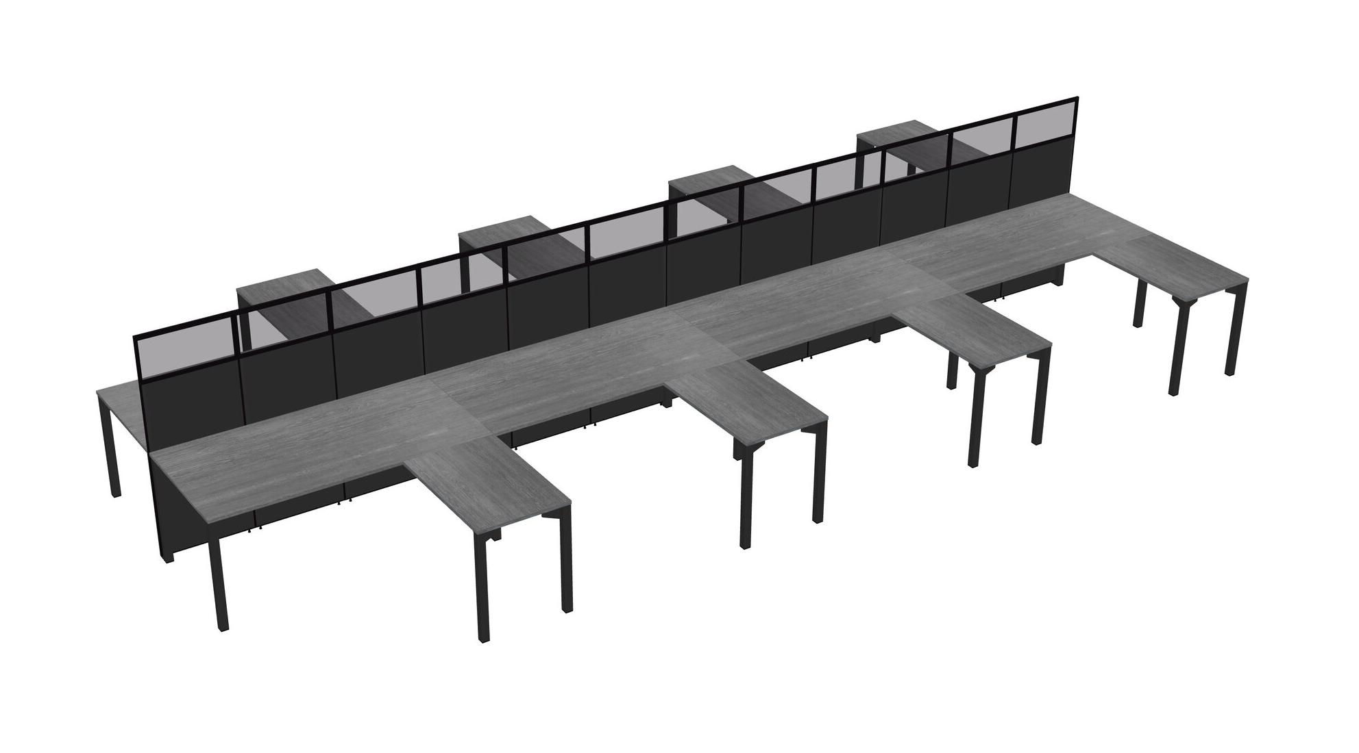 Grey Shared L-shape Office Cubicle Panel System For 8 Persons
