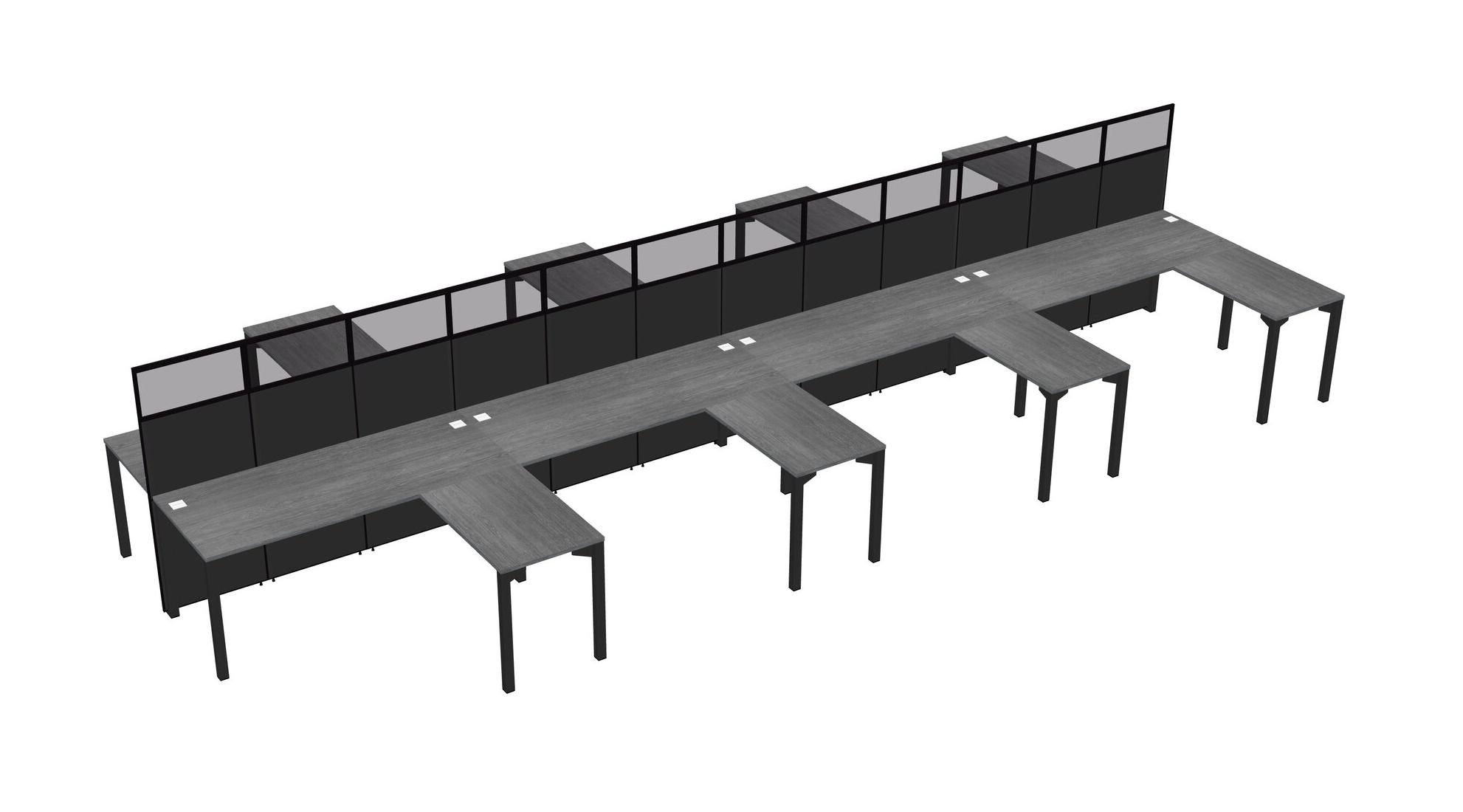 Grey Shared L-shape Office Cubicle Panel System For 8 Persons