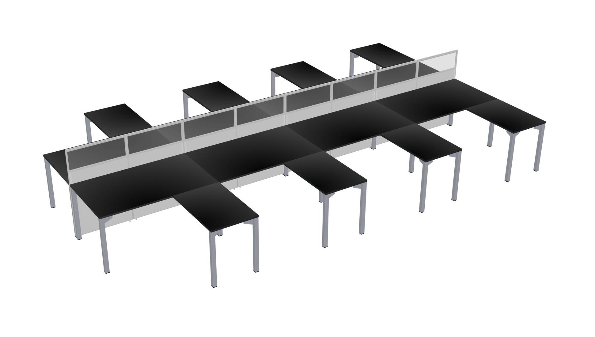 Black Shared L-shape Office Cubicle Panel System For 8 Persons