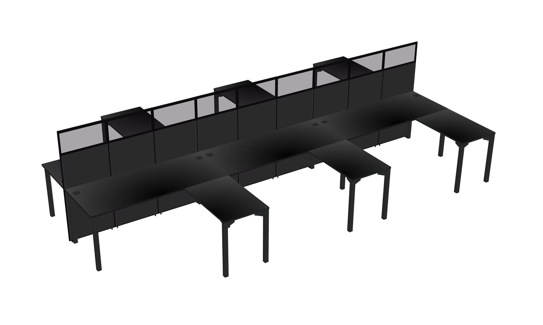 Black Shared L-shape Office Cubicle Panel System For 6 Persons