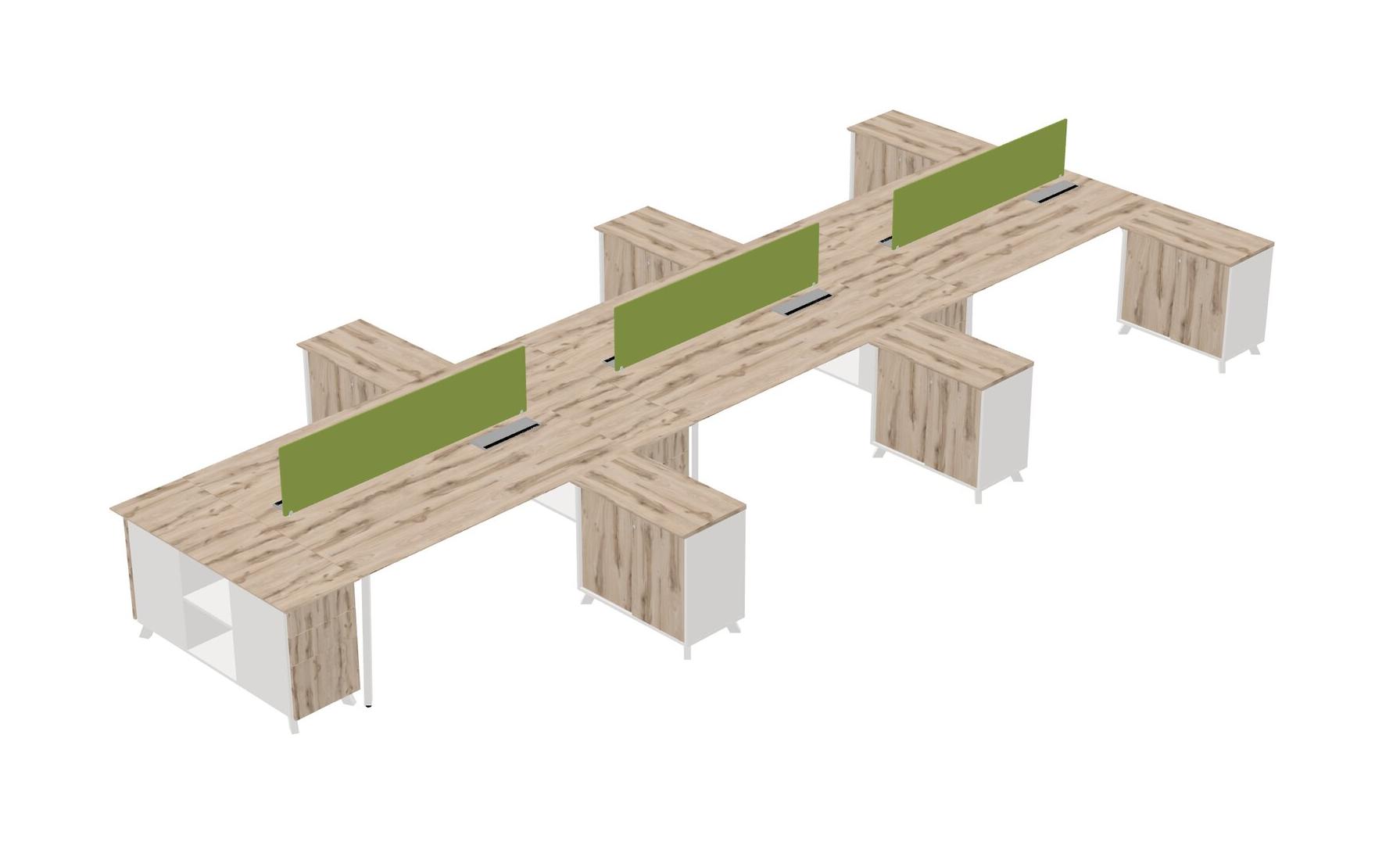 Slick Heinne Holz Shared L-shaped Office Desk + Storage Cabinet + Desk Return + Highball Desk Divider For 6 Persons