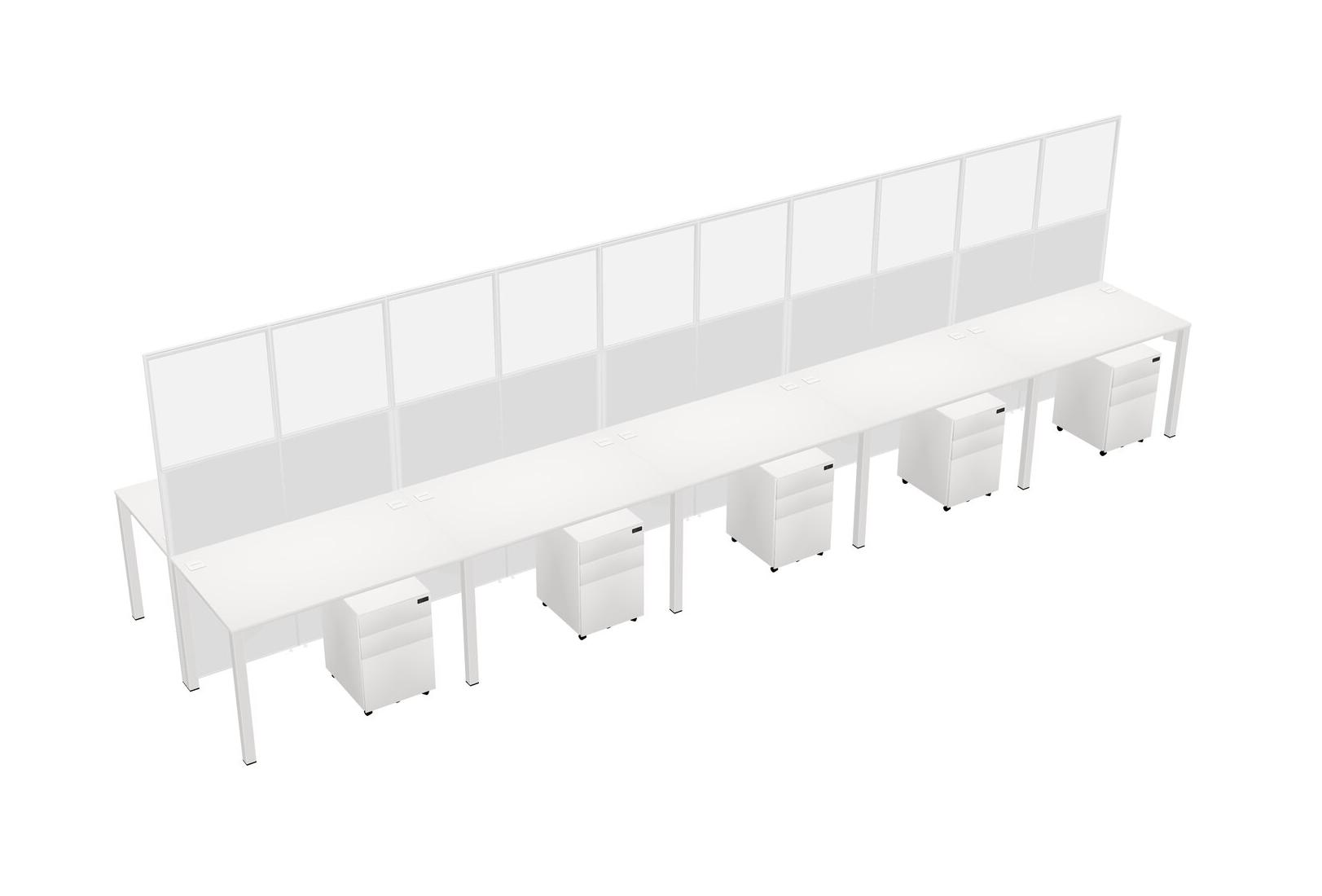 White Shared Rectangular Office Cubicle Panel System With Mobile Drawers For 10 Persons