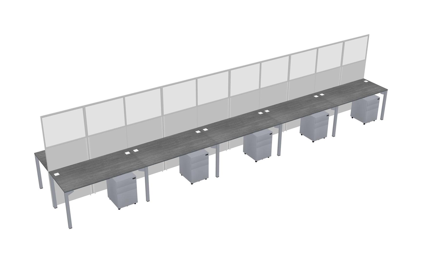 Grey Shared Rectangular Office Cubicle Panel System With Mobile Drawers For 10 Persons