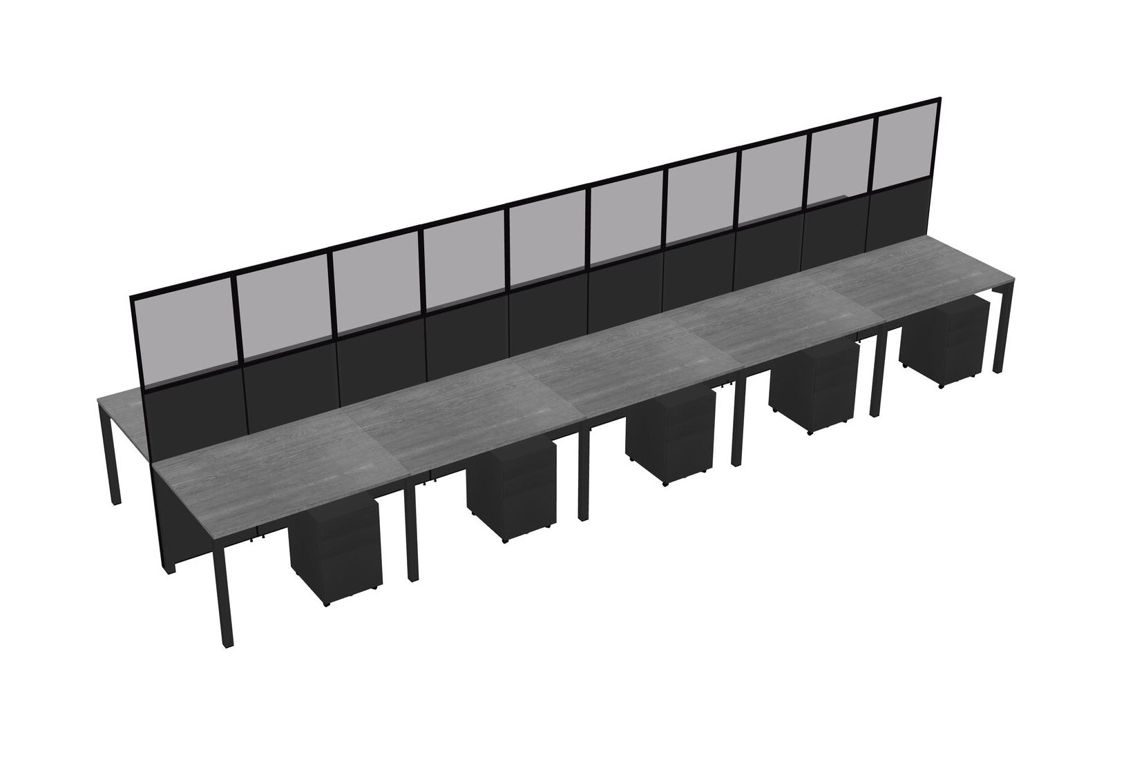 Grey Shared Rectangular Office Cubicle Panel System With Mobile Drawers For 10 Persons
