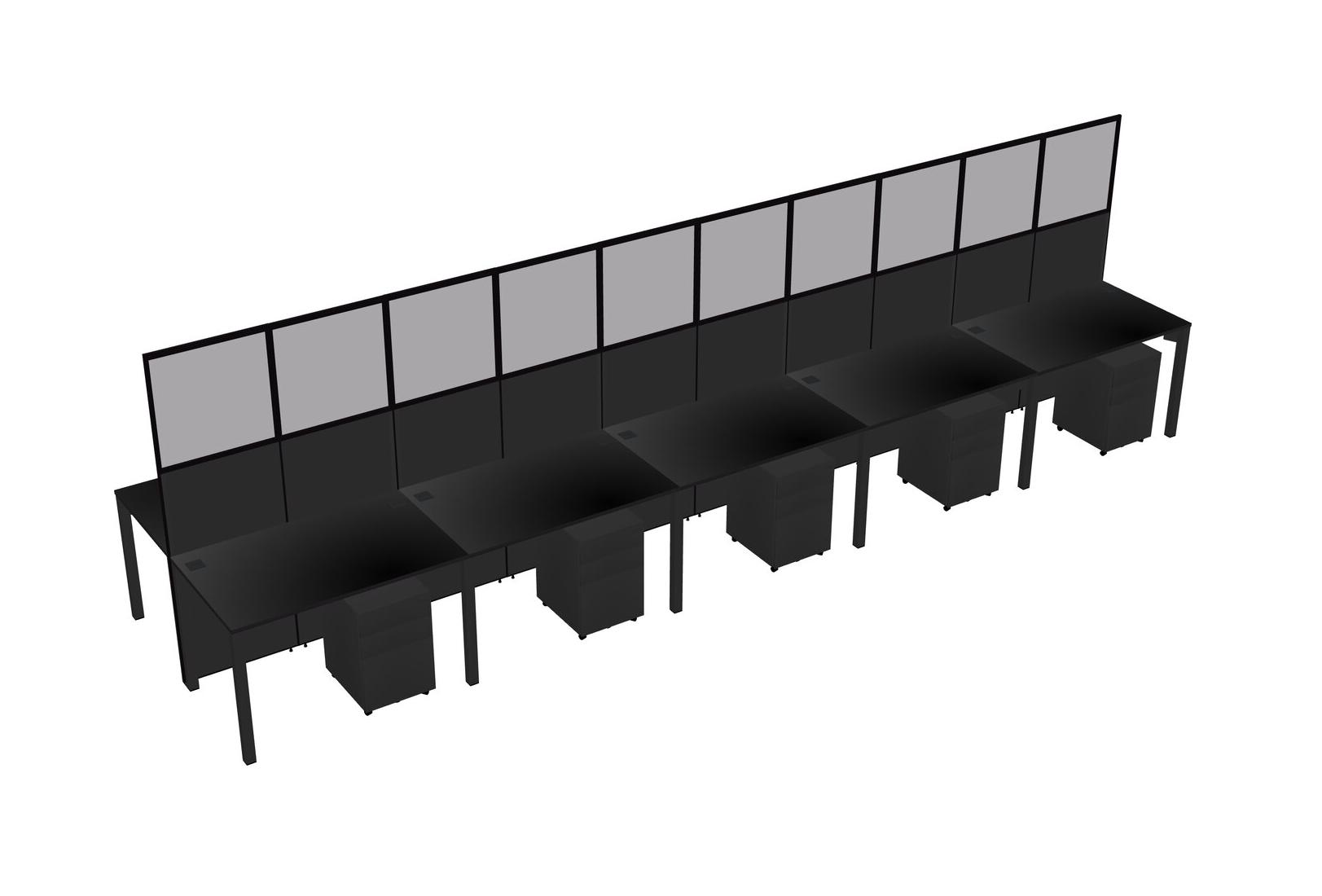 Black Shared Rectangular Office Cubicle Panel System With Mobile Drawers For 10 Persons