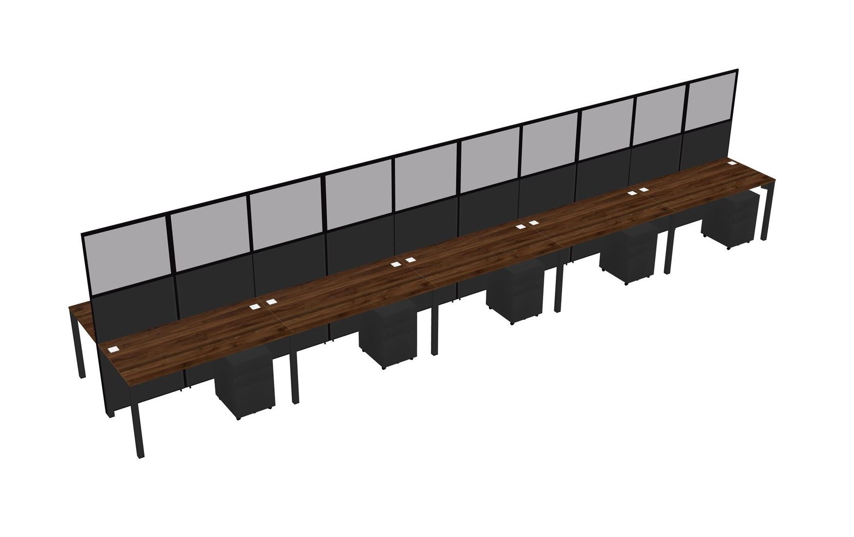 Columbia Walnut Shared Rectangular Office Cubicle Panel System With Mobile Drawers For 10 Persons