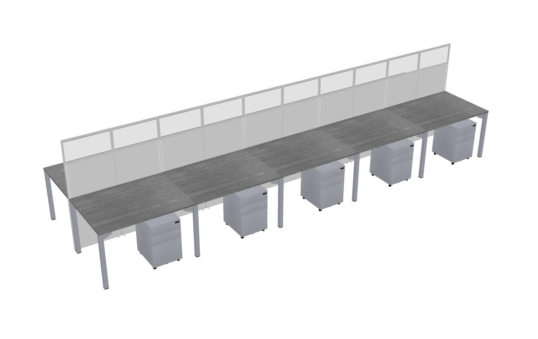 Grey Shared Rectangular Office Cubicle Panel System With Mobile Drawers For 10 Persons