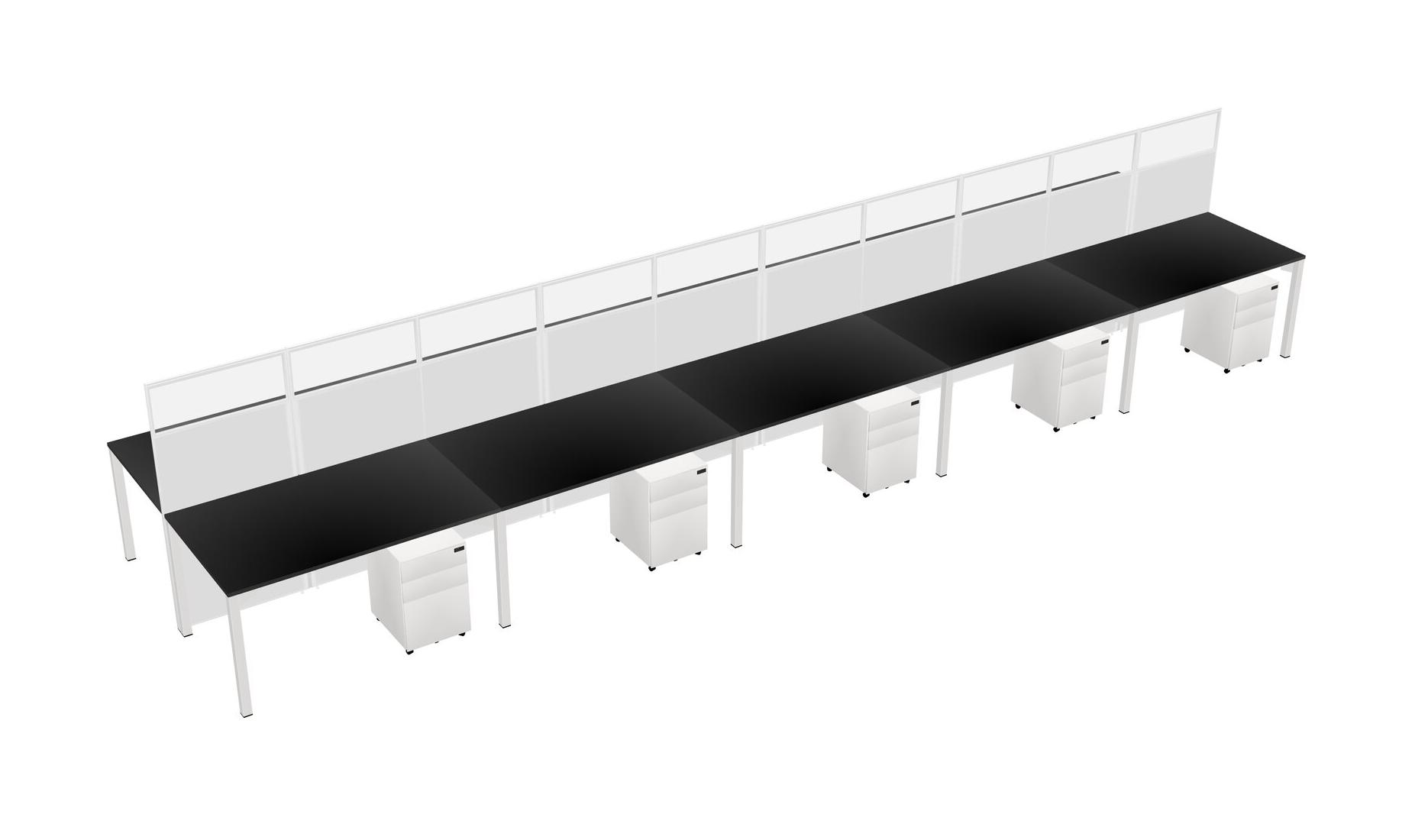 Black Shared Rectangular Office Cubicle Panel System With Mobile Drawers For 10 Persons