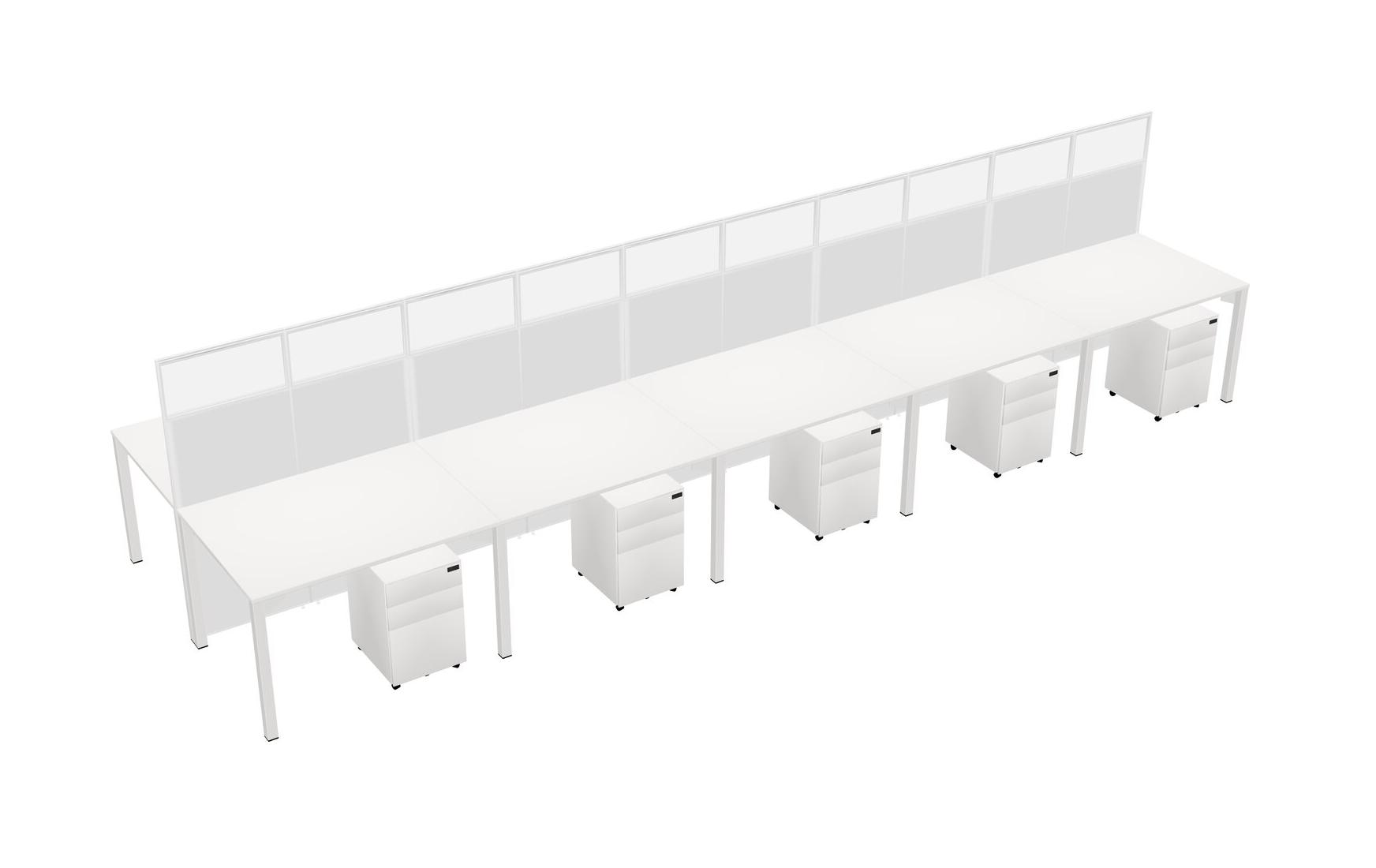 White Shared Rectangular Office Cubicle Panel System With Mobile Drawers For 10 Persons