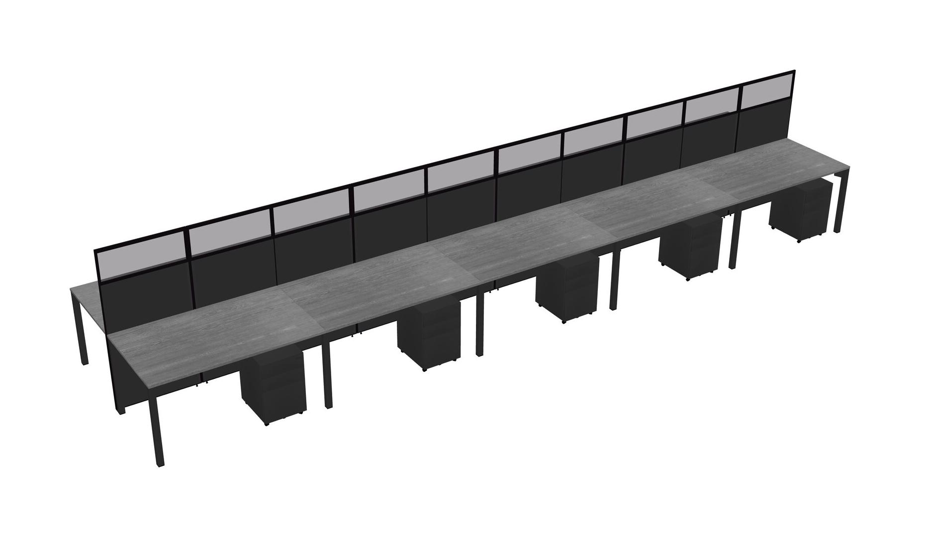 Grey Shared Rectangular Office Cubicle Panel System With Mobile Drawers For 10 Persons