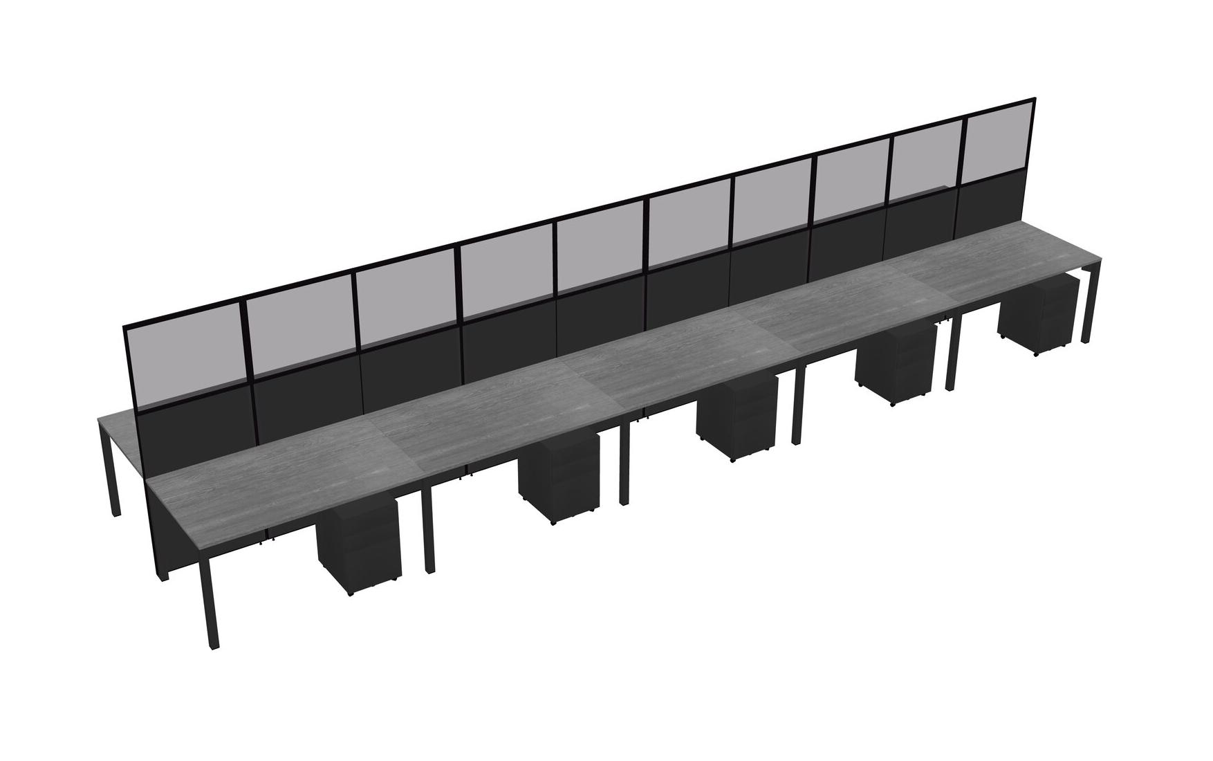 Grey Shared Rectangular Office Cubicle Panel System With Mobile Drawers For 10 Persons