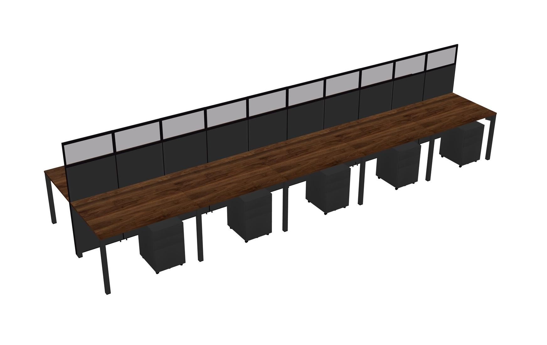 Columbia Walnut Shared Rectangular Office Cubicle Panel System With Mobile Drawers For 10 Persons