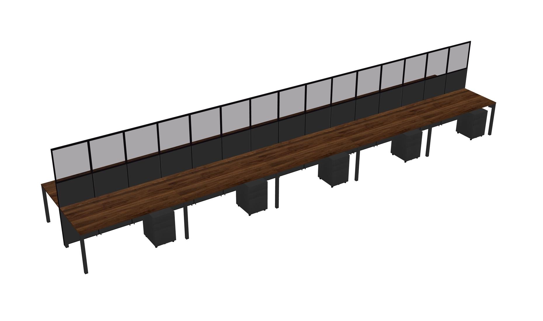 Columbia Walnut Shared Rectangular Office Cubicle Panel System With Mobile Drawers For 10 Persons