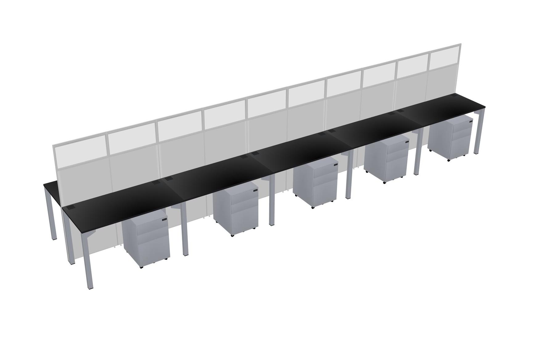 Black Shared Rectangular Office Cubicle Panel System With Mobile Drawers For 10 Persons