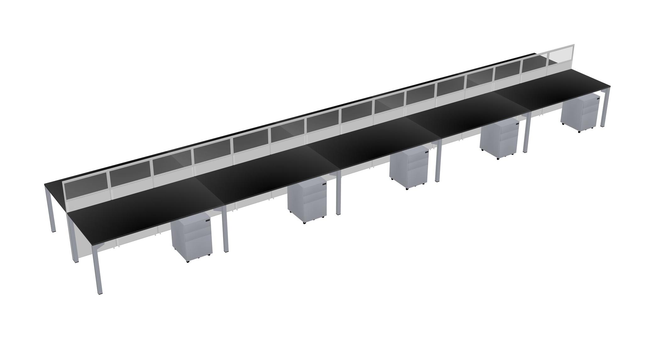 Black Shared Rectangular Office Cubicle Panel System With Mobile Drawers For 10 Persons