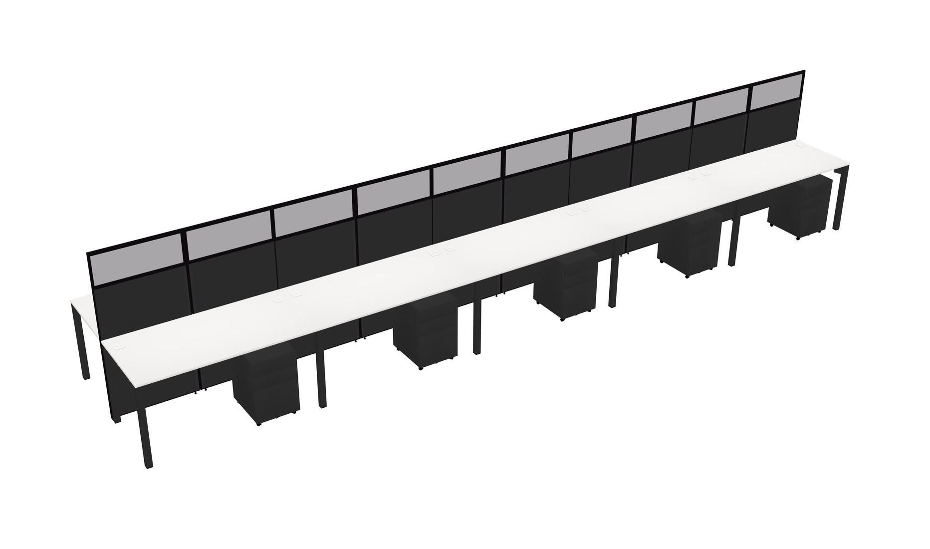 White Shared Rectangular Office Cubicle Panel System With Mobile Drawers For 10 Persons
