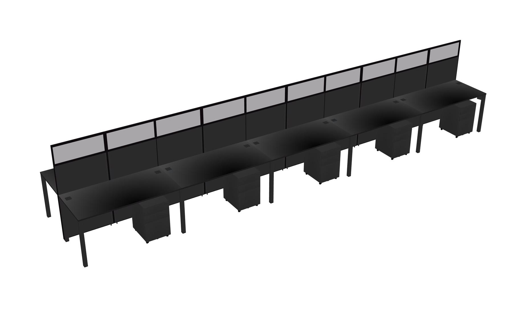 Black Shared Rectangular Office Cubicle Panel System With Mobile Drawers For 10 Persons
