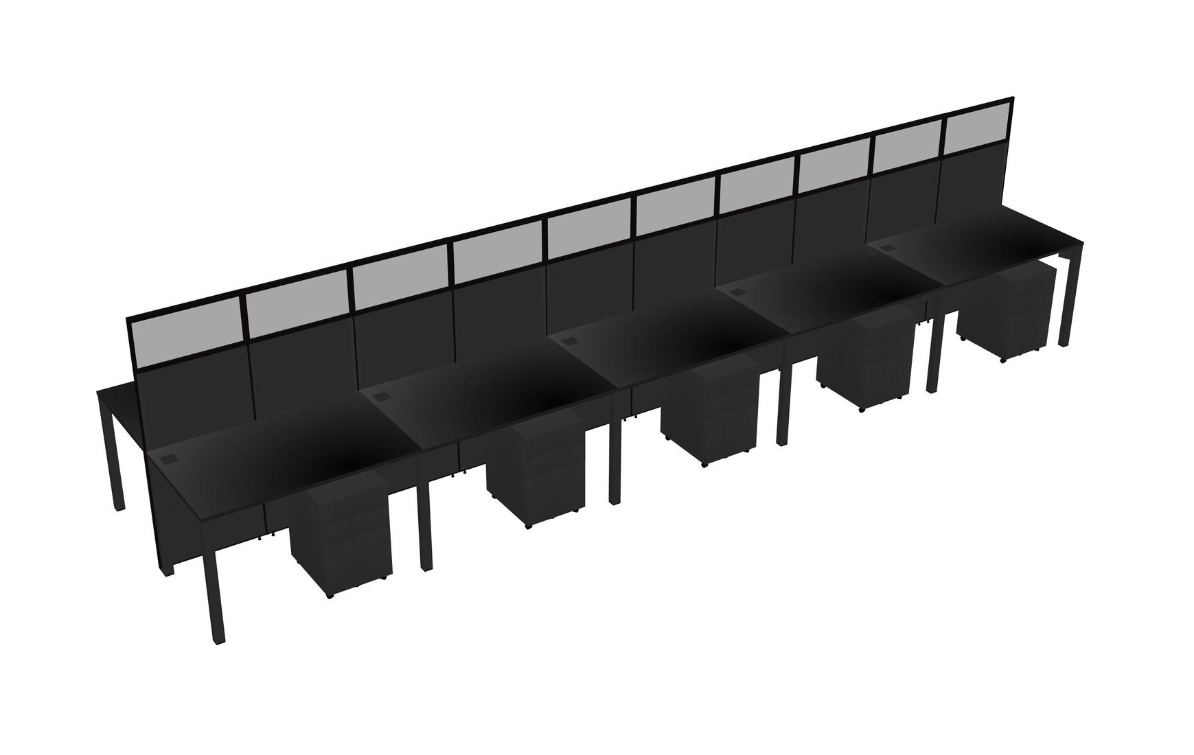 Black Shared Rectangular Office Cubicle Panel System With Mobile Drawers For 10 Persons