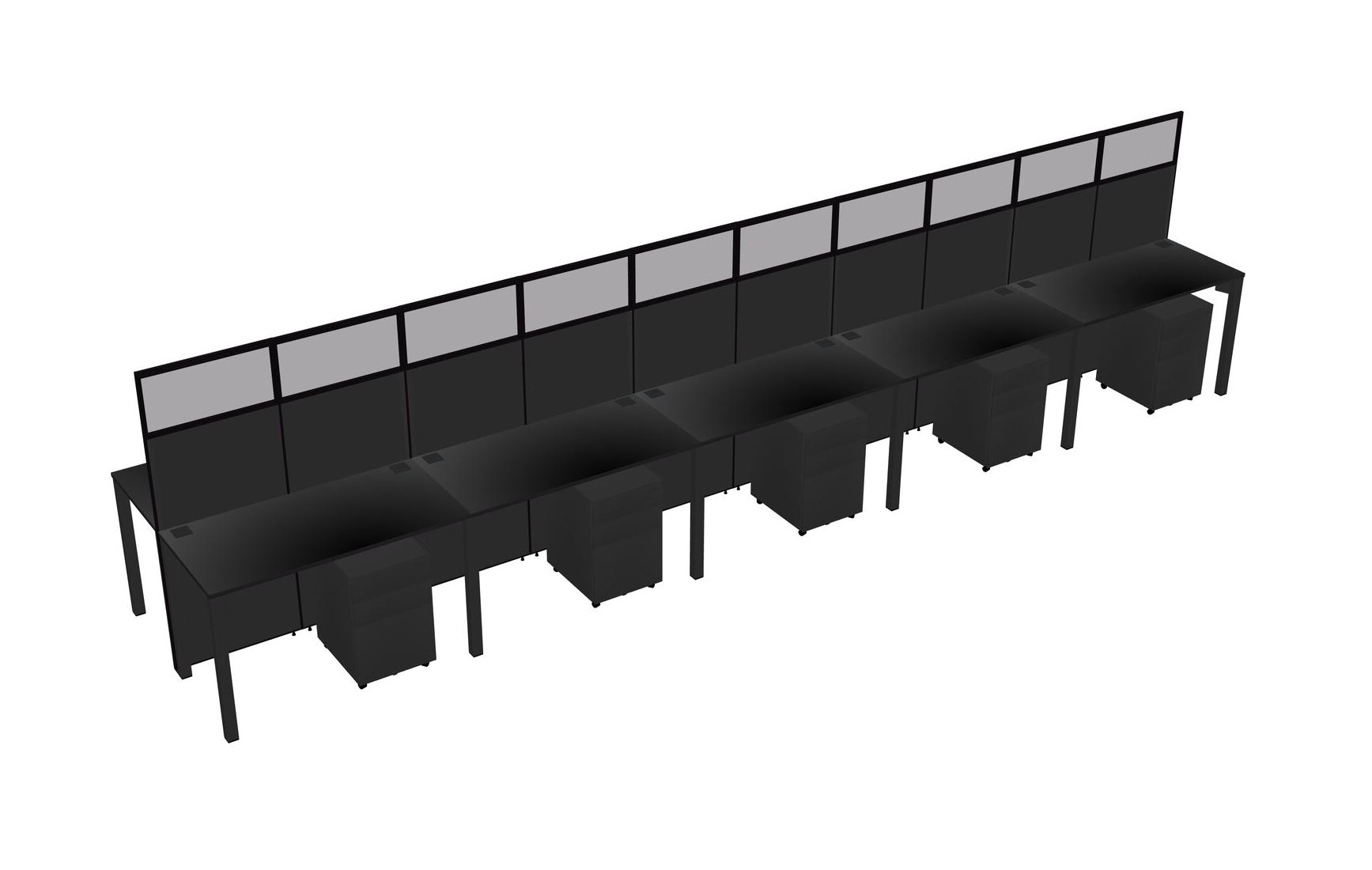 Black Shared Rectangular Office Cubicle Panel System With Mobile Drawers For 10 Persons