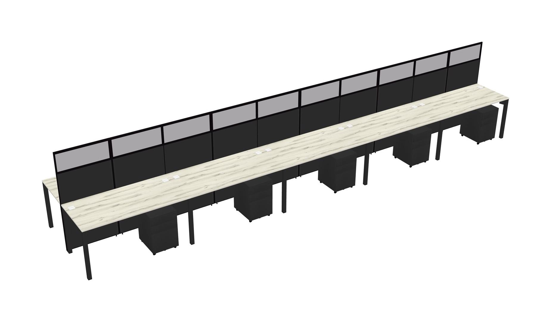 Heinne Holz Shared Rectangular Office Cubicle Panel System With Mobile Drawers For 10 Persons