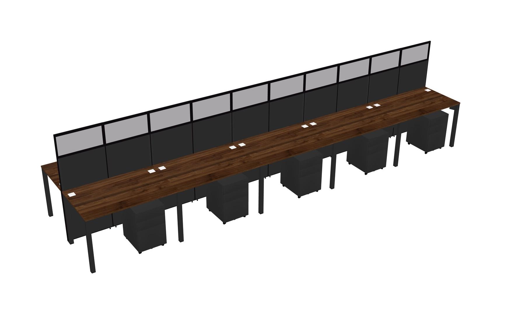 Columbia Walnut Shared Rectangular Office Cubicle Panel System With Mobile Drawers For 10 Persons