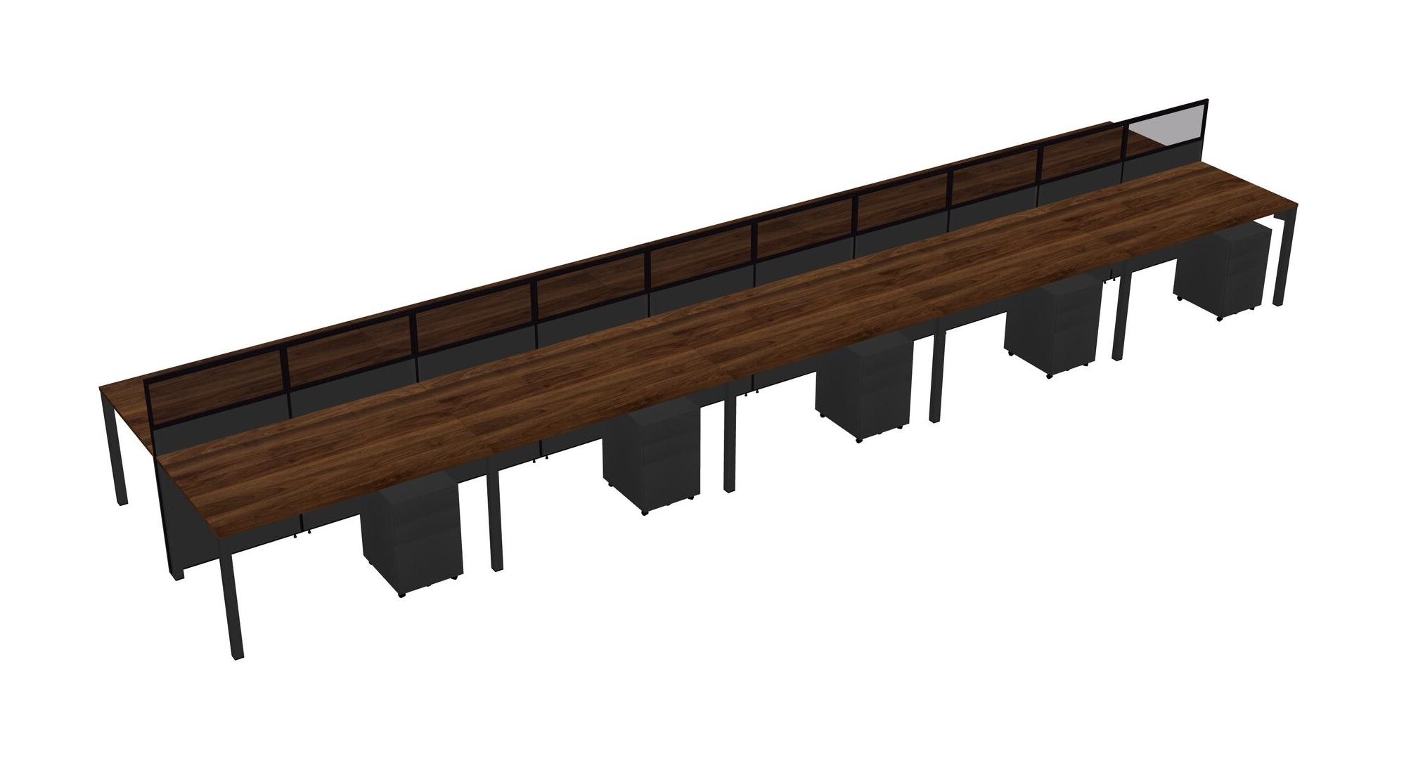 Columbia Walnut Shared Rectangular Office Cubicle Panel System With Mobile Drawers For 10 Persons