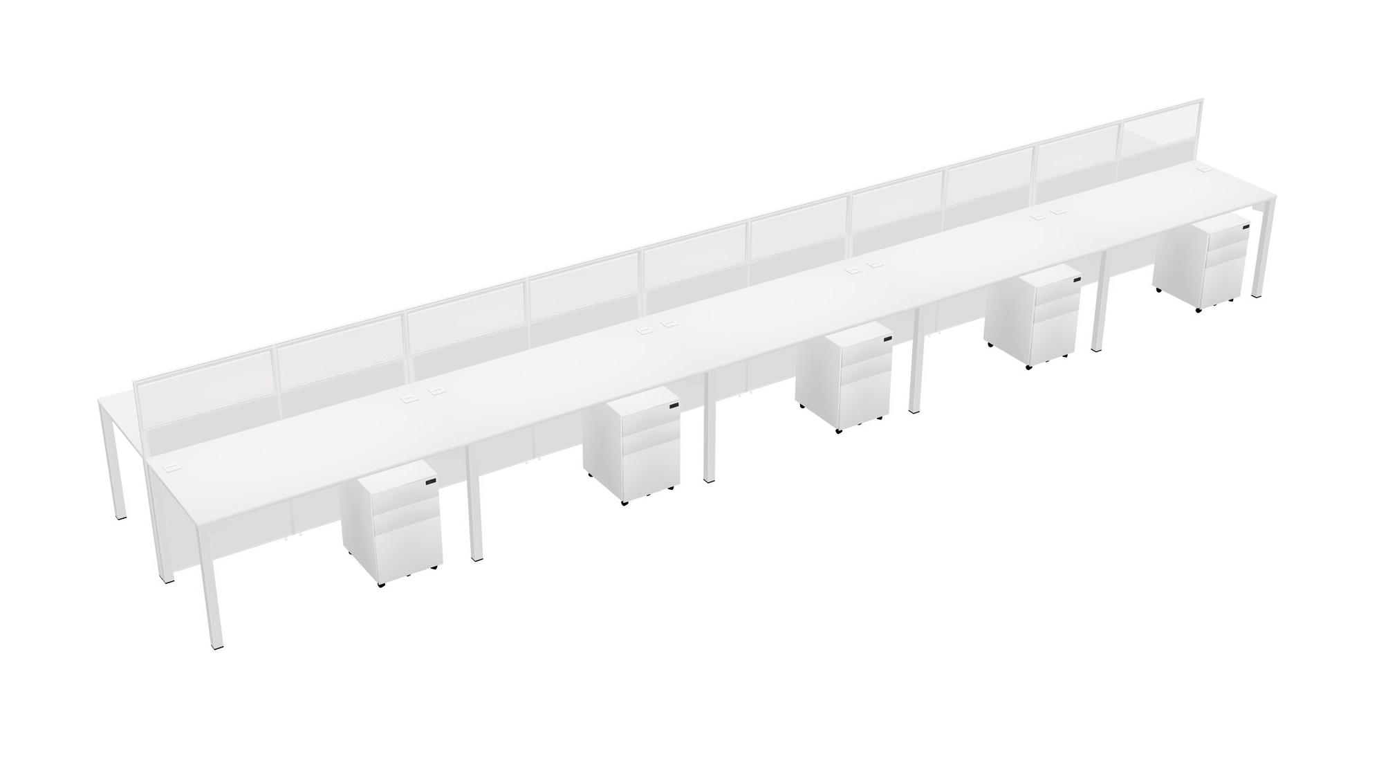 White Shared Rectangular Office Cubicle Panel System With Mobile Drawers For 10 Persons