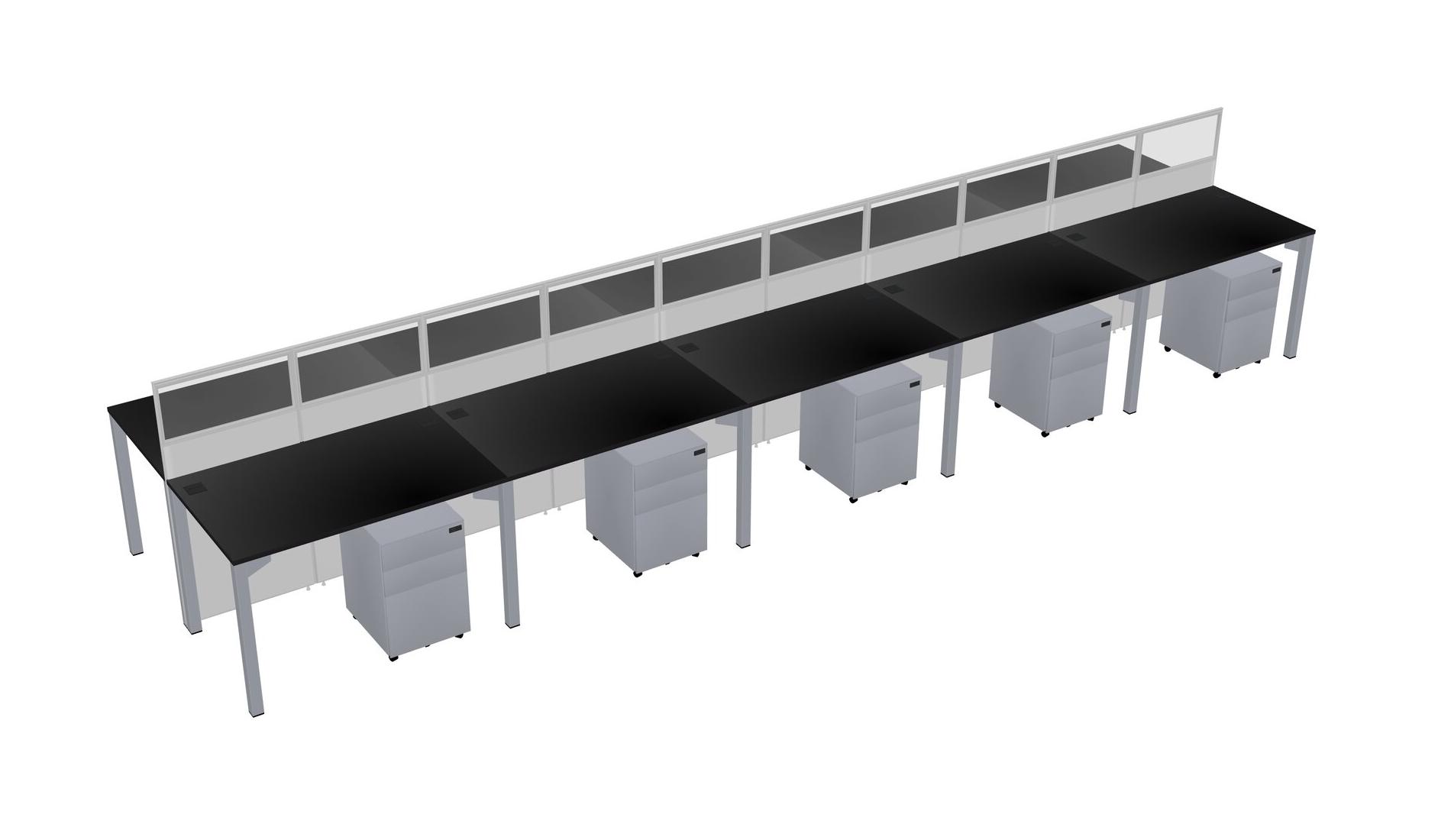 Black Shared Rectangular Office Cubicle Panel System With Mobile Drawers For 10 Persons
