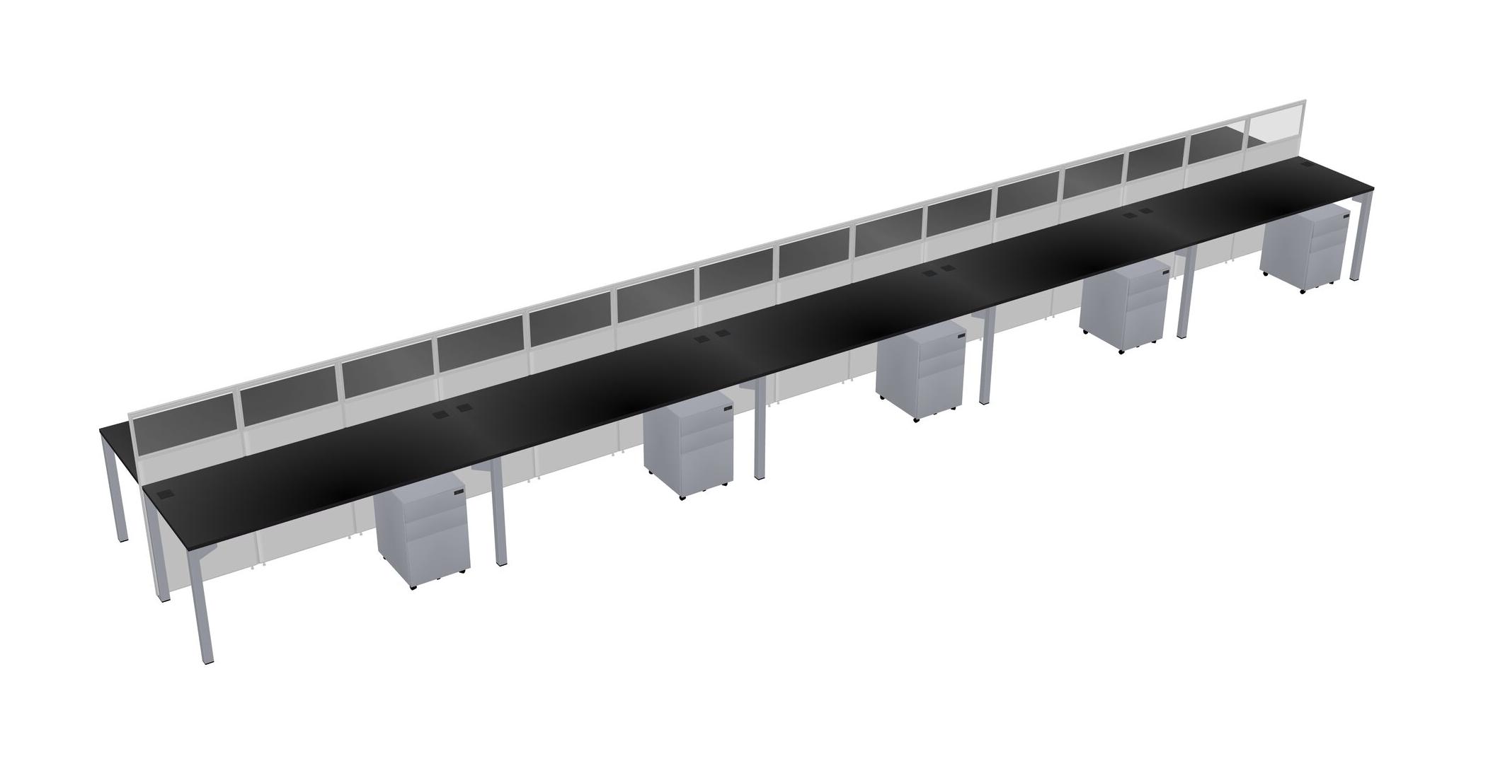 Black Shared Rectangular Office Cubicle Panel System With Mobile Drawers For 10 Persons