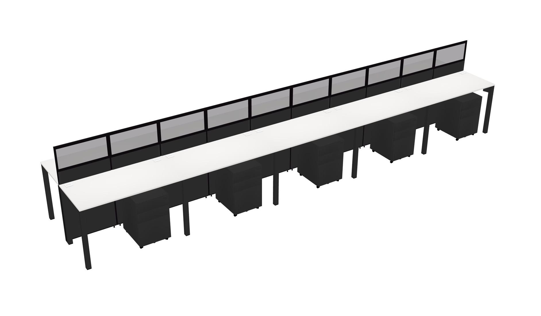 White Shared Rectangular Office Cubicle Panel System With Mobile Drawers For 10 Persons
