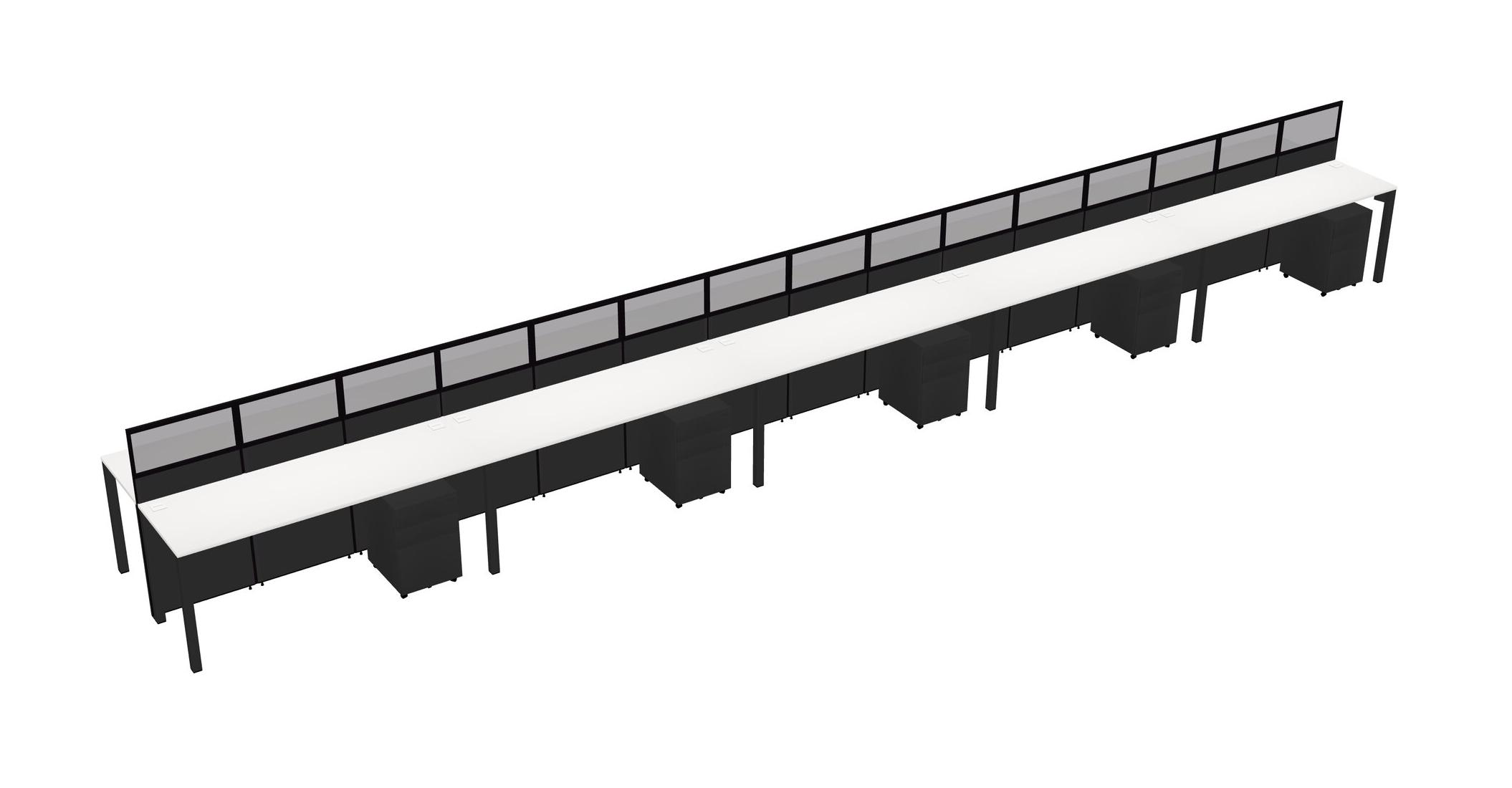 White Shared Rectangular Office Cubicle Panel System With Mobile Drawers For 10 Persons