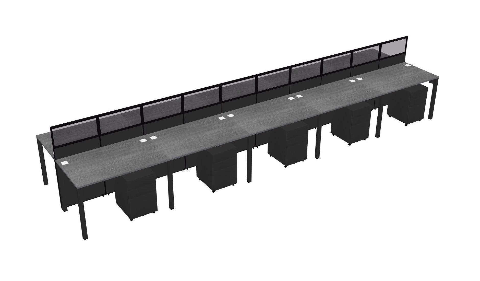Grey Shared Rectangular Office Cubicle Panel System With Mobile Drawers For 10 Persons
