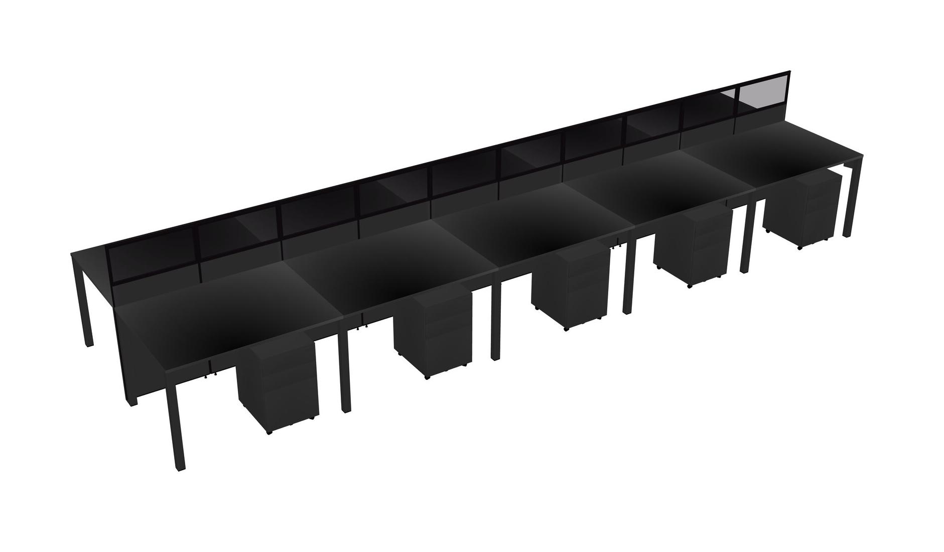 Black Shared Rectangular Office Cubicle Panel System With Mobile Drawers For 10 Persons